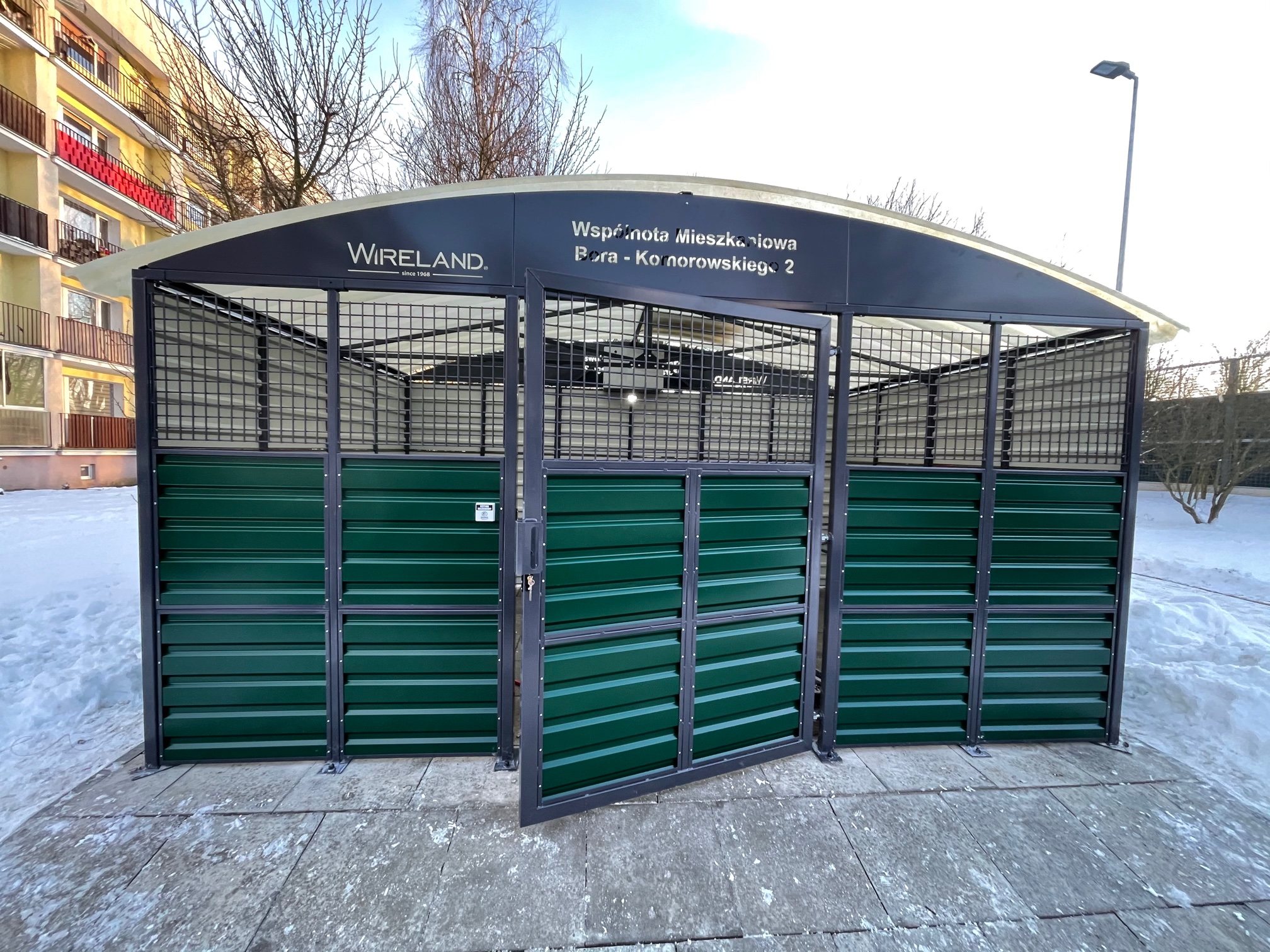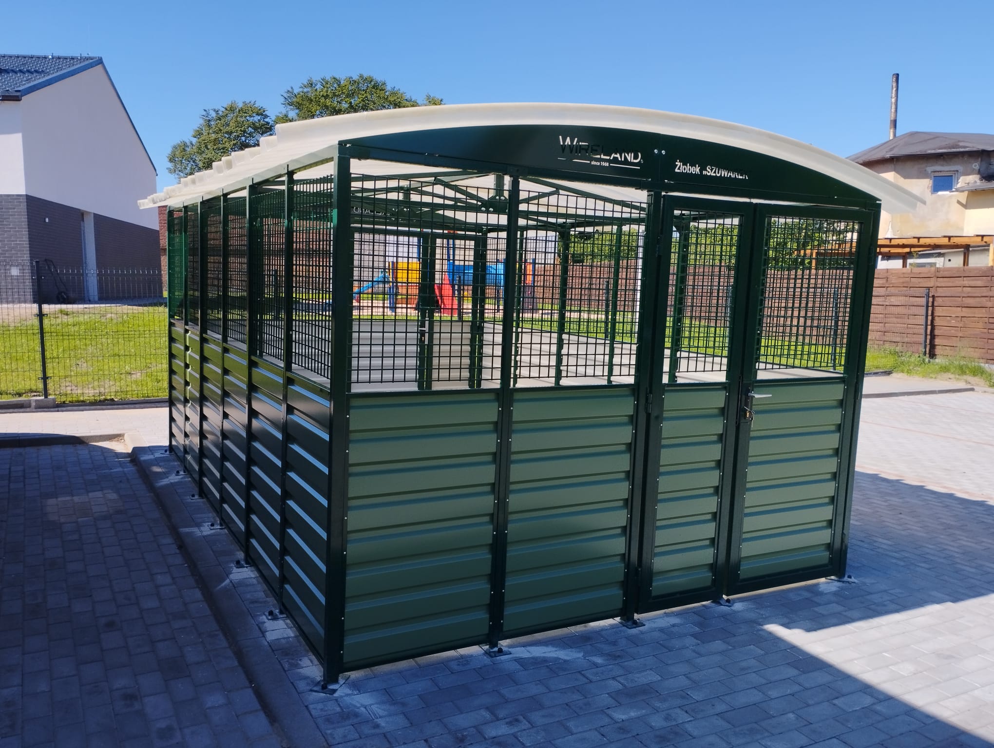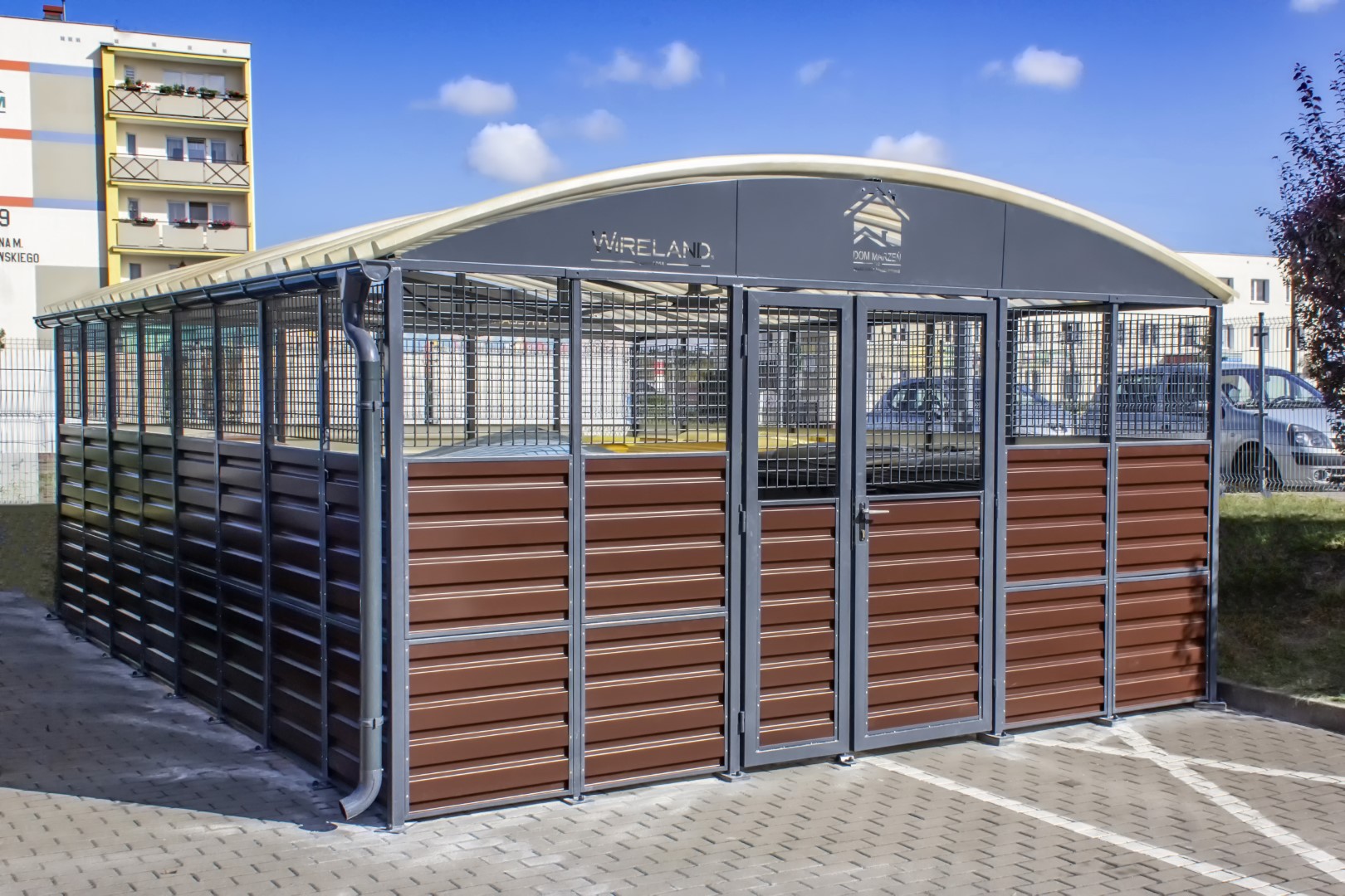 Wiaty Bartek Premium to solidne i trwałe konstrukcje ze stalowej ramy ocynkowanej i malowanej proszkowo w palecie RAL, co zapewnia odporność na korozję i dodatkowe wzmocnienie. W ofercie dostępne są dachy dwuspadowe z blachy trapezowej lub łukowe z laminatu z żywicy epoksydowej, a górne wypełnienie wiat wykonane jest z siatki drucianej o gęstym oczku i większej grubości drutu. Dolne wypełnienie stanowią panele z poziomej blachy trapezowej osadzone w ramie kątownika, co gwarantuje trwałość i estetyczny wygląd. Drzwi wiat Bartek Premium mają wzmocnioną ramę, są zabudowane blachą trapezową iwyposażone w zamki renomowanej firmy Locinox, z opcją kontroli dostępu – mechaniczną, szyfrową lub na baterie. Konstrukcje mogą być dodatkowo wyposażone w oświetlenie LED z czujką ruchu i zmierzchu, co zwiększa komfort użytkowania i bezpieczeństwo. Seria Bartek Premium obejmuje wiele wariantów i konfiguracji, pozwalając dopasować wiaty do potrzeb klientów i wymagań przestrzennych.