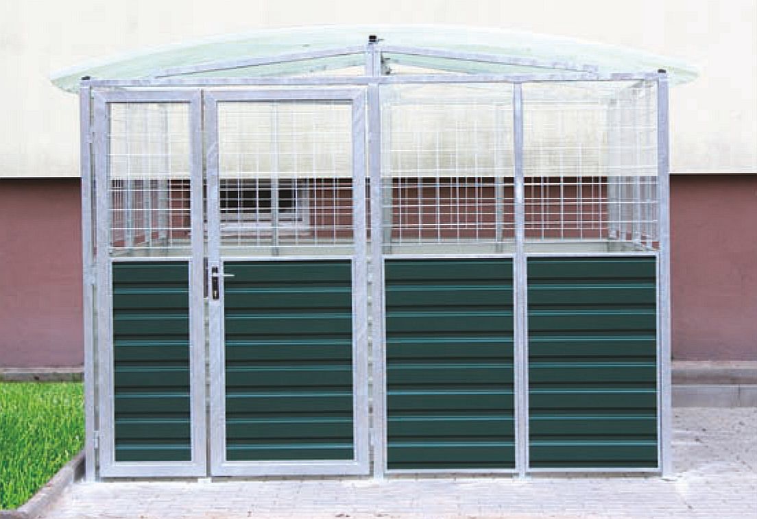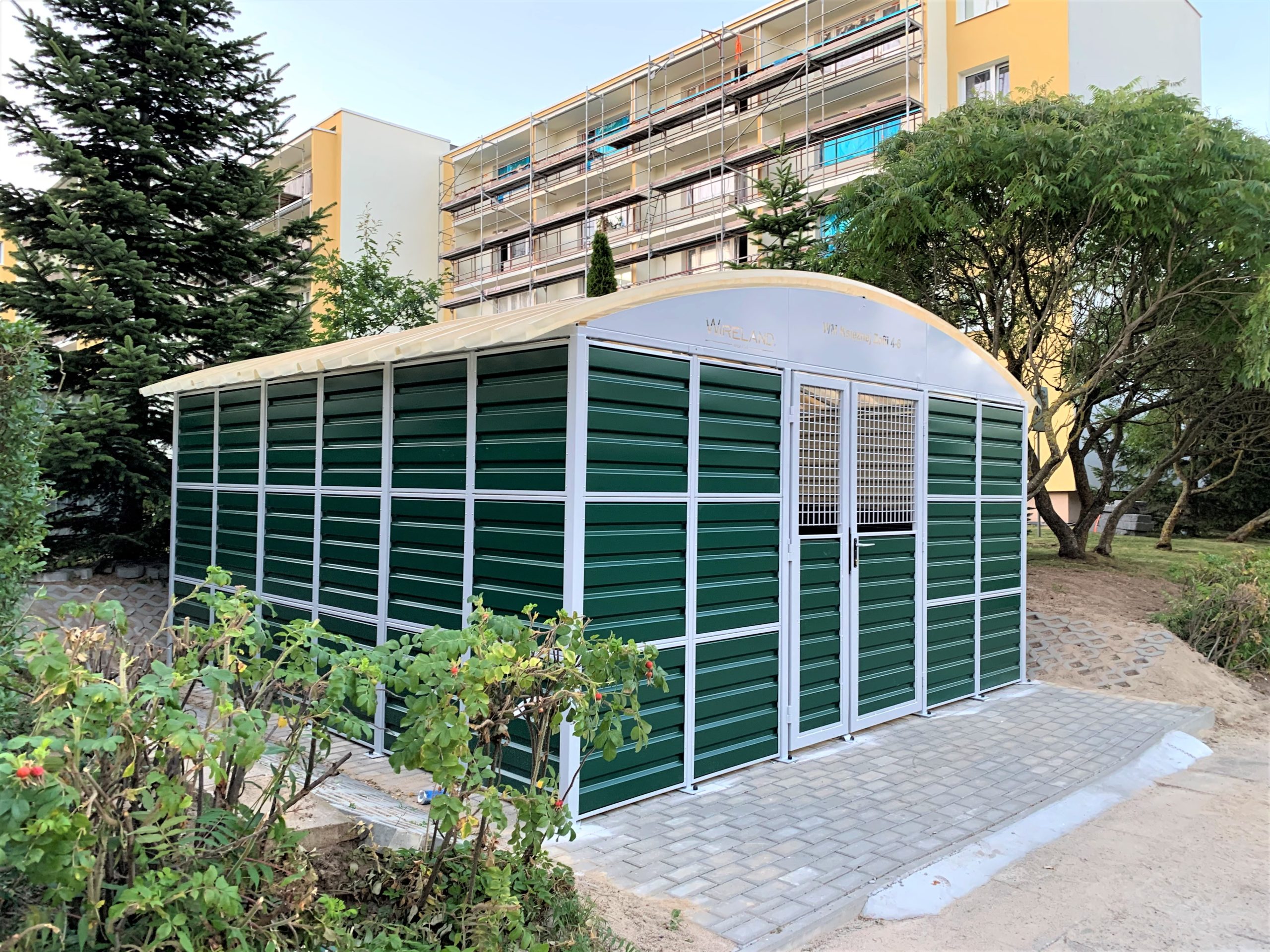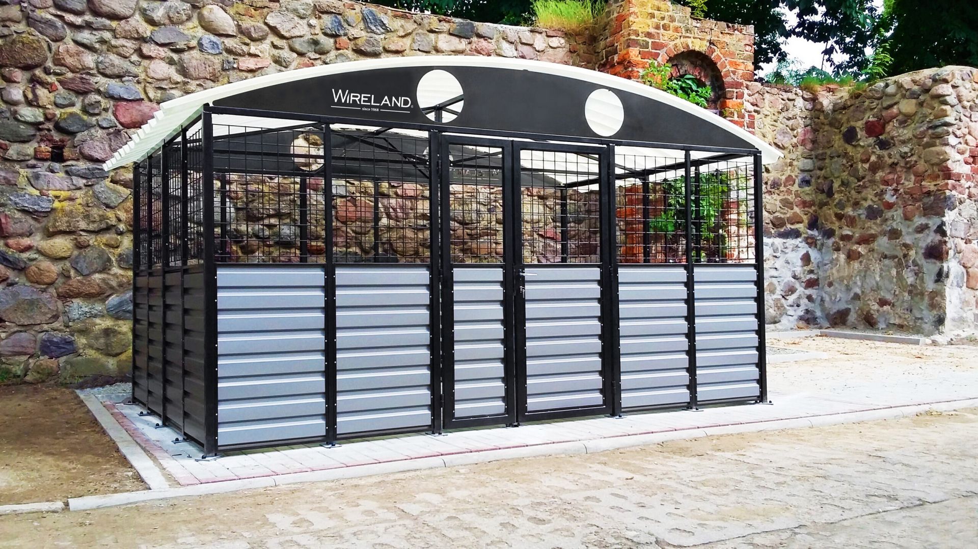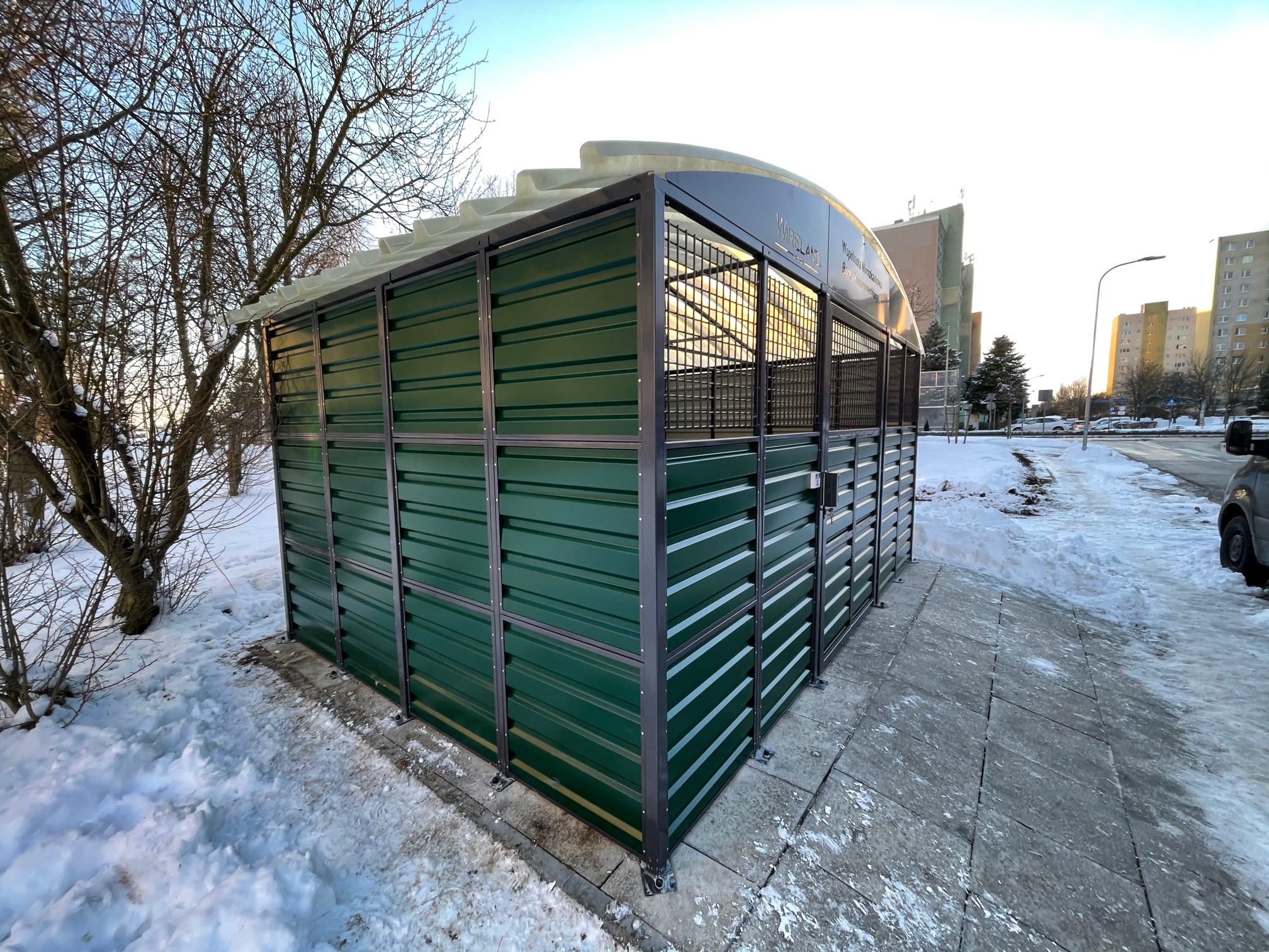 Wiaty Bartek Premium to solidne i trwałe konstrukcje ze stalowej ramy ocynkowanej i malowanej proszkowo w palecie RAL, co zapewnia odporność na korozję i dodatkowe wzmocnienie. W ofercie dostępne są dachy dwuspadowe z blachy trapezowej lub łukowe z laminatu z żywicy epoksydowej, a górne wypełnienie wiat wykonane jest z siatki drucianej o gęstym oczku i większej grubości drutu. Dolne wypełnienie stanowią panele z poziomej blachy trapezowej osadzone w ramie kątownika, co gwarantuje trwałość i estetyczny wygląd. Drzwi wiat Bartek Premium mają wzmocnioną ramę, są zabudowane blachą trapezową iwyposażone w zamki renomowanej firmy Locinox, z opcją kontroli dostępu – mechaniczną, szyfrową lub na baterie. Konstrukcje mogą być dodatkowo wyposażone w oświetlenie LED z czujką ruchu i zmierzchu, co zwiększa komfort użytkowania i bezpieczeństwo. Seria Bartek Premium obejmuje wiele wariantów i konfiguracji, pozwalając dopasować wiaty do potrzeb klientów i wymagań przestrzennych.