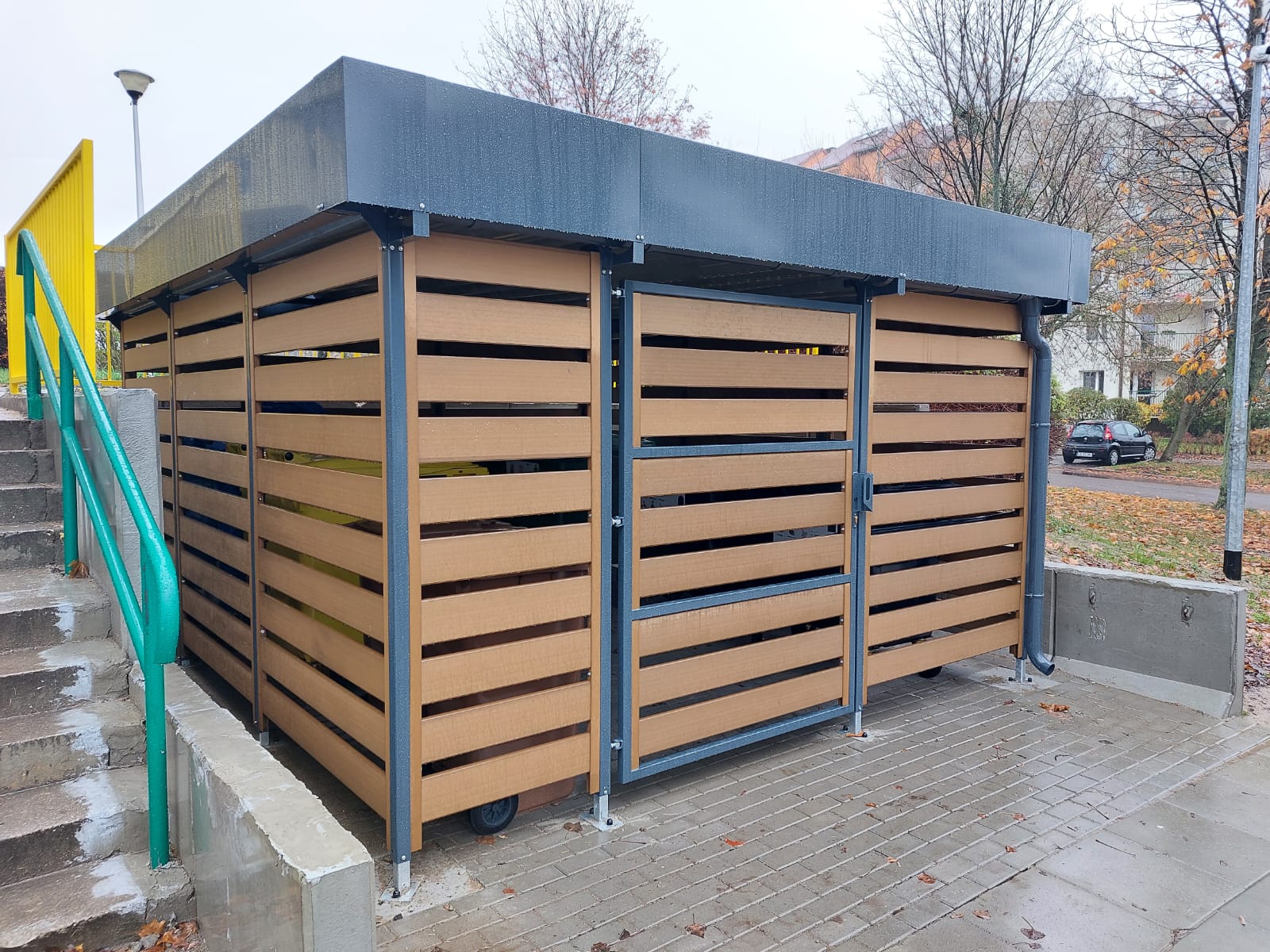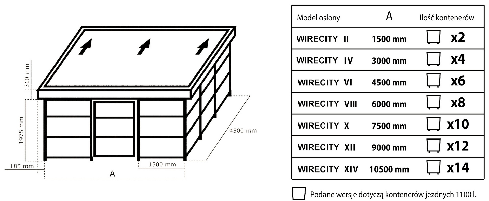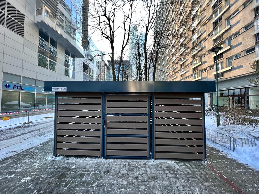 Wirecity to nowoczesna wiata śmietnikowa o prostym, estetycznym designie, dopasowanym do osiedli mieszkaniowych, firm i przestrzeni publicznych. Oferuje szeroki wybór paneli bocznych, co pozwala dopasować wygląd do otoczenia. Konstrukcja posiada estetycznie ukryte elementy łączące, które zapewniają spójny i nowoczesny wygląd. Istnieje możliwość zastosowania oświetlenia wewnętrznego oraz systemu kontroli dostępu. Stopy poziomujące umożliwiają stabilny montaż i precyzyjne ustawienie wiaty na różnym podłożu. Solidna konstrukcja stalowa i funkcjonalne rozwiązania sprawiają, że Wirecity to trwałe i praktyczne rozwiązanie do zabudowy pojemników na odpady.